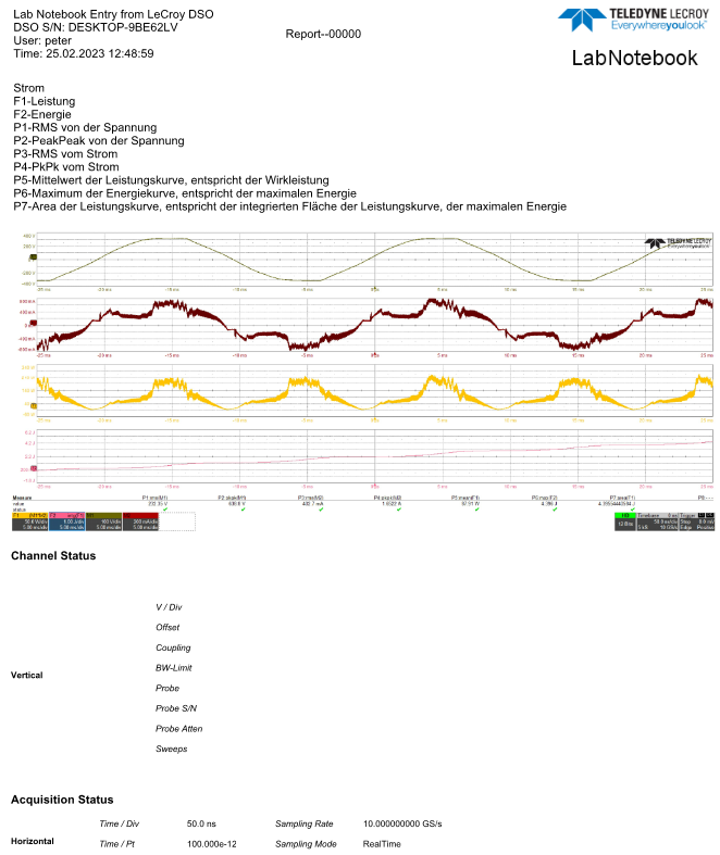 Somit sind wir am Ziel angelangt, dass mit Kurven erfasst mit einem LeCroy WaveSurfer Oszilloskop ein Rapport in PDF vorliegt.