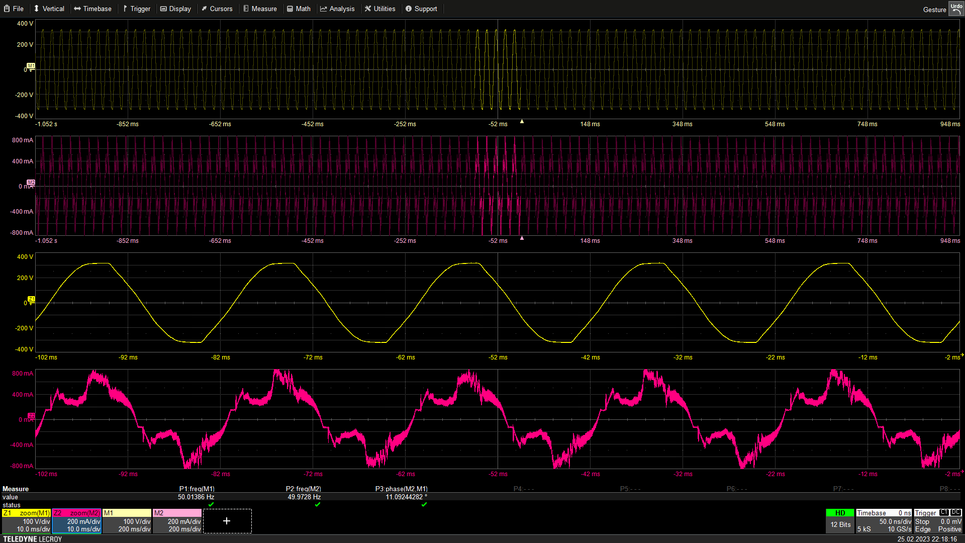 Die gewünschten Signale werden mit dem WaveSurfer Oszilloskop im Sequence Mode mit 1000 Segmenten erfasst.