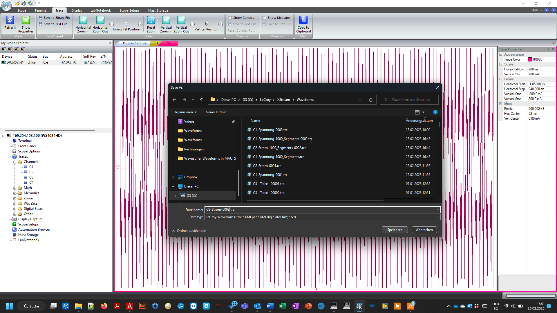 erscheint das Fenster Save As. Die Kurve wird unter dem gewünschten Namen im LeCroy Binärformat gespeichert.