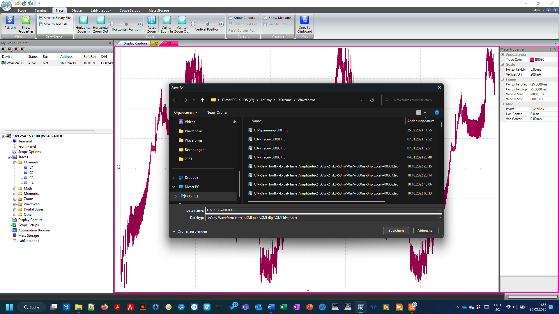 erscheint das Fenster Save As. Die Kurve wird unter dem gewünschten Namen im LeCroy Binärformat gespeichert.