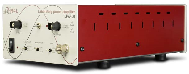 Die beiden Verstärker LPA400A und LPA400B von N4L wurden dimensioniert für das Erzeugen von hohen Spannungen im Labor. Der LAP400A erreicht eine maximale Spannung von 800 V-Spitze-Spitze bei 50 mArms, und der LAP400B eine maximale Spannung von 360 V-Spitze-Spitze bei 100 mArms.